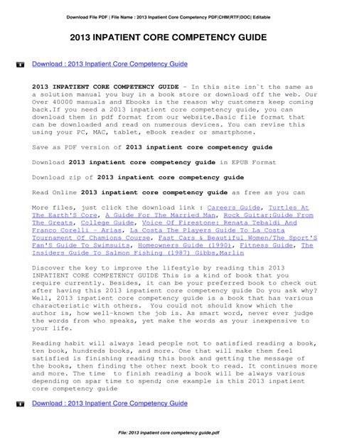 | File Name: 2013 Inpatient Core Competency Guide.pdf Size: 5766 KB Type: PDF, ePub, eBook |