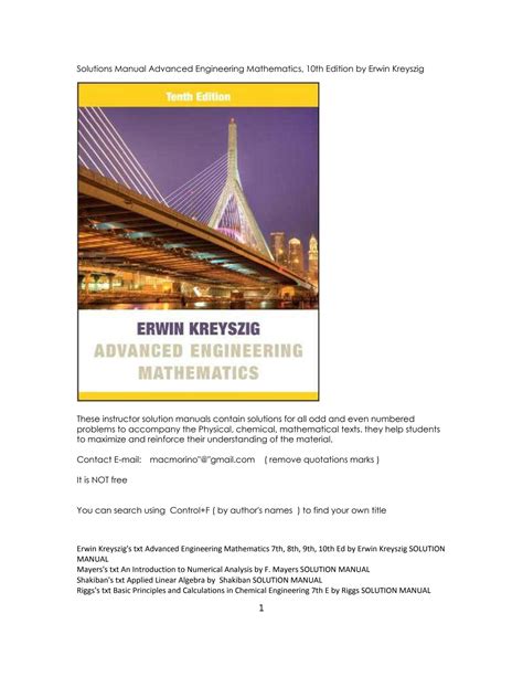 In order to read or download Advanced Engineering Mathematics Kreyszig 10th Edition Solution Manual ebook, you need to create a FREE account.