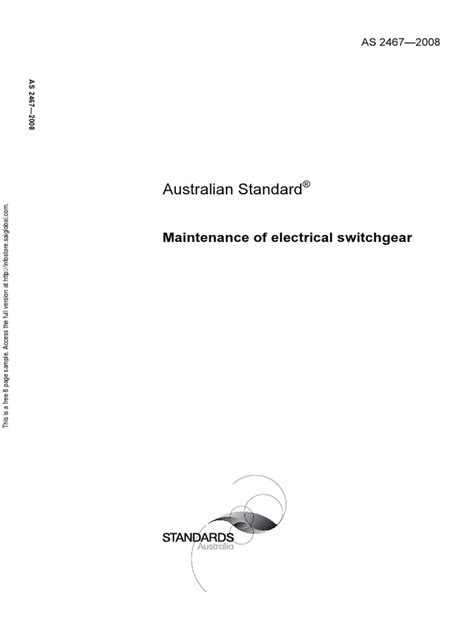 | File Name: As 2467 2008 Maintenance Of Electrical Switchgear.pdf Size: 4535 KB Type: PDF, ePub, eBook |