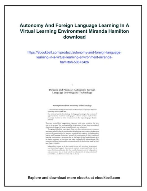 | File Name: Autonomy And Foreign Language Learning In A Virtual Learning Environment Miranda Hamilton.pdf Size: 5153 KB Type: PDF, ePub, eBook |