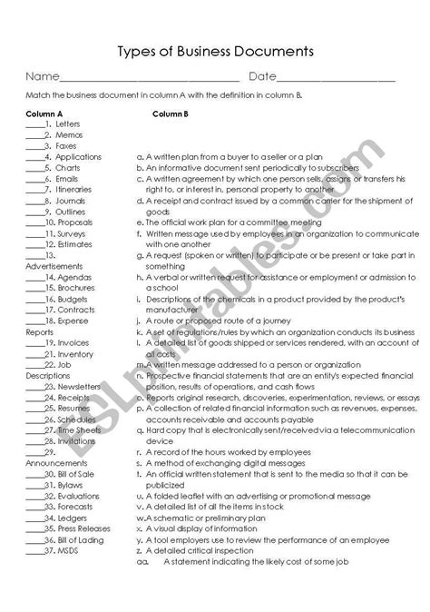 In order to read or download Business Documents Worksheet ebook, you need to create a FREE account.