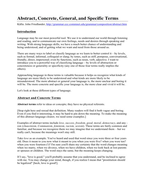 | File Name: Friedlander Abstract Concrete General And Specific Terms.pdf Size: 4867 KB Type: PDF, ePub, eBook |