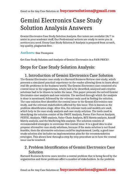 In order to read or download Gemini Electronics Case Study ebook, you need to create a FREE account.