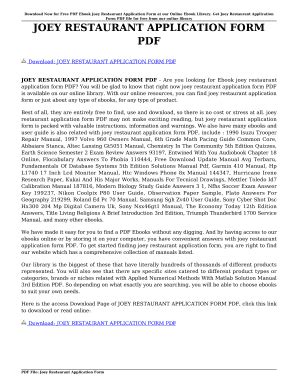 In order to read or download Joey Restaurant Application Form ebook, you need to create a FREE account.