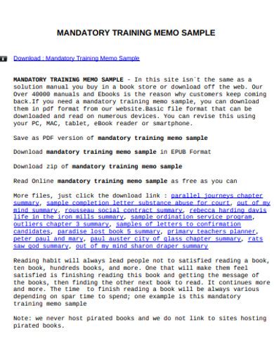 In order to read or download Mandatory Training Memo Sample ebook, you need to create a FREE account.