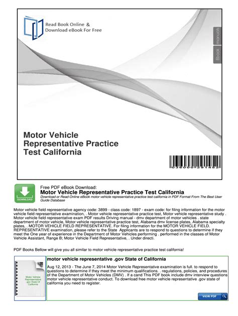 In order to read or download Motor Vehicle Field Representative Study Guide ebook, you need to create a FREE account.