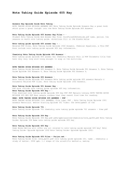 In order to read or download Note Taking Guide Episode 605 Answers ebook, you need to create a FREE account.