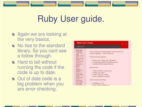 | File Name: Ruby User Guide.pdf Size: 4867 KB Type: PDF, ePub, eBook |
