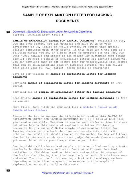 | File Name: Sample Of Explanation Letter For Lacking Documents.pdf Size: 5129 KB Type: PDF, ePub, eBook |