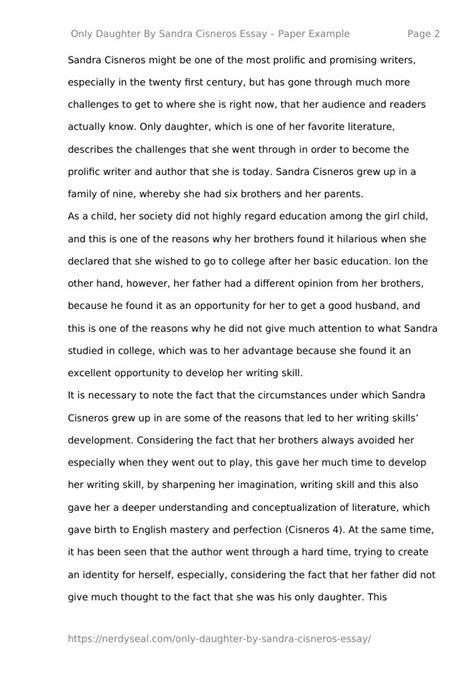 | File Name: Sandra Cisneros Essay Paper.pdf Size: 4519 KB Type: PDF, ePub, eBook |
