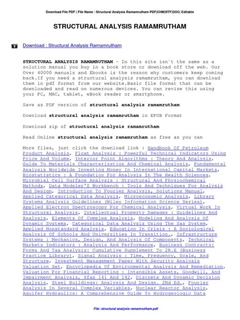 In order to read or download Structural Analysis Book Pdf By Ramamrutham ebook, you need to create a FREE account.