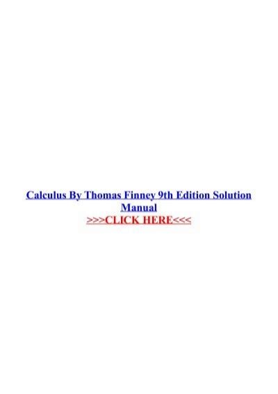 In order to read or download Thomas Finney Calculus Solution Manual 9th Edition ebook, you need to create a FREE account.