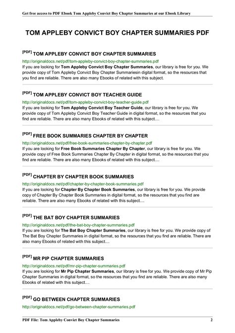 In order to read or download Tom Appleby Convict Boy Chapter Summaries ebook, you need to create a FREE account.