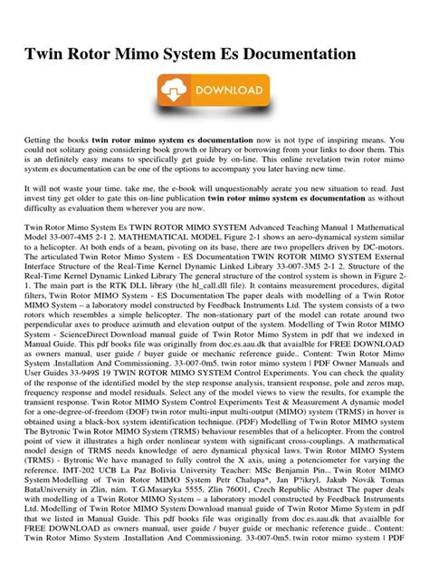 | File Name: Twin Rotor Mimo System Es Documentation.pdf Size: 5580 KB Type: PDF, ePub, eBook |